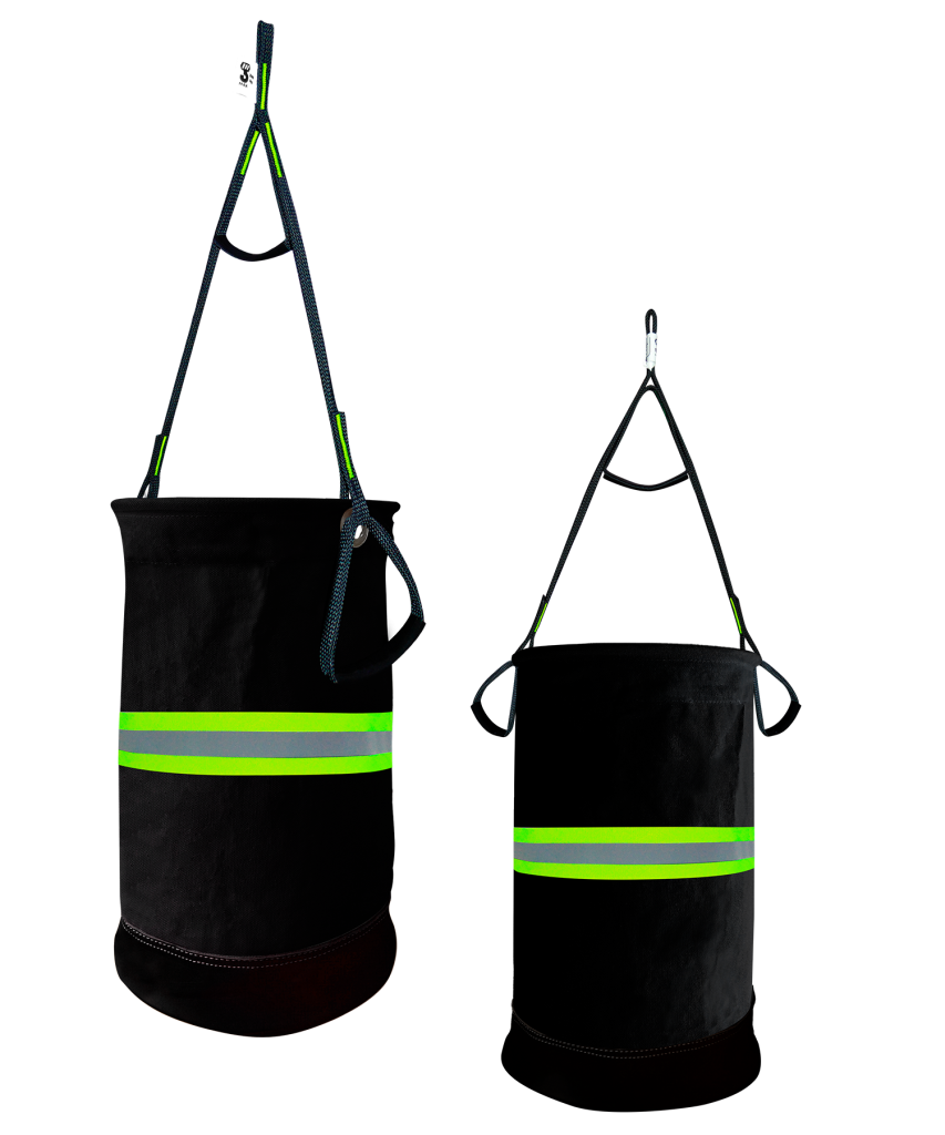 Inicio / Productos / Artículos para trabajos verticales / rescate / espacios confinados/Equipos complementarios/Porta materiales/Balde liniero de lona en color negro, con cinta reflectiva, capacidad 20 litros