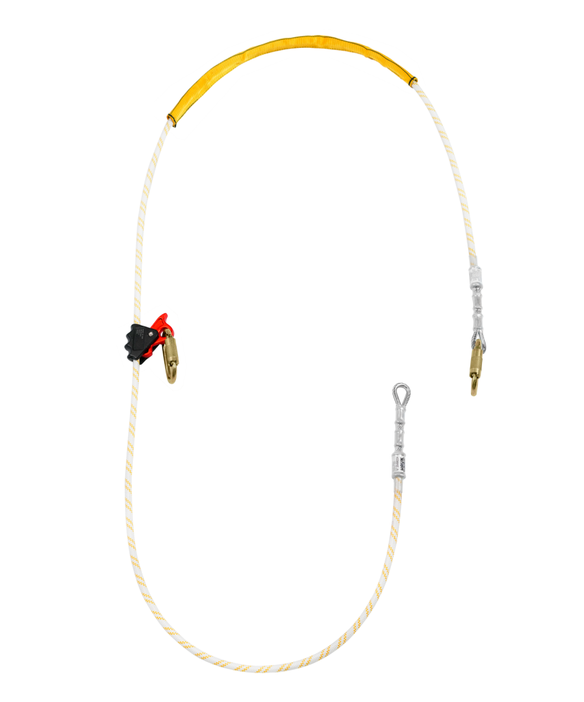 Inicio / Productos / Líneas de vida/conexión sin amortiguador/Líneas de conexión/Cuerda semiestática tipo a de 11 mm/Línea de conexión de cuerda de 11 mm, con alma de acero, un freno y dos mosquetones