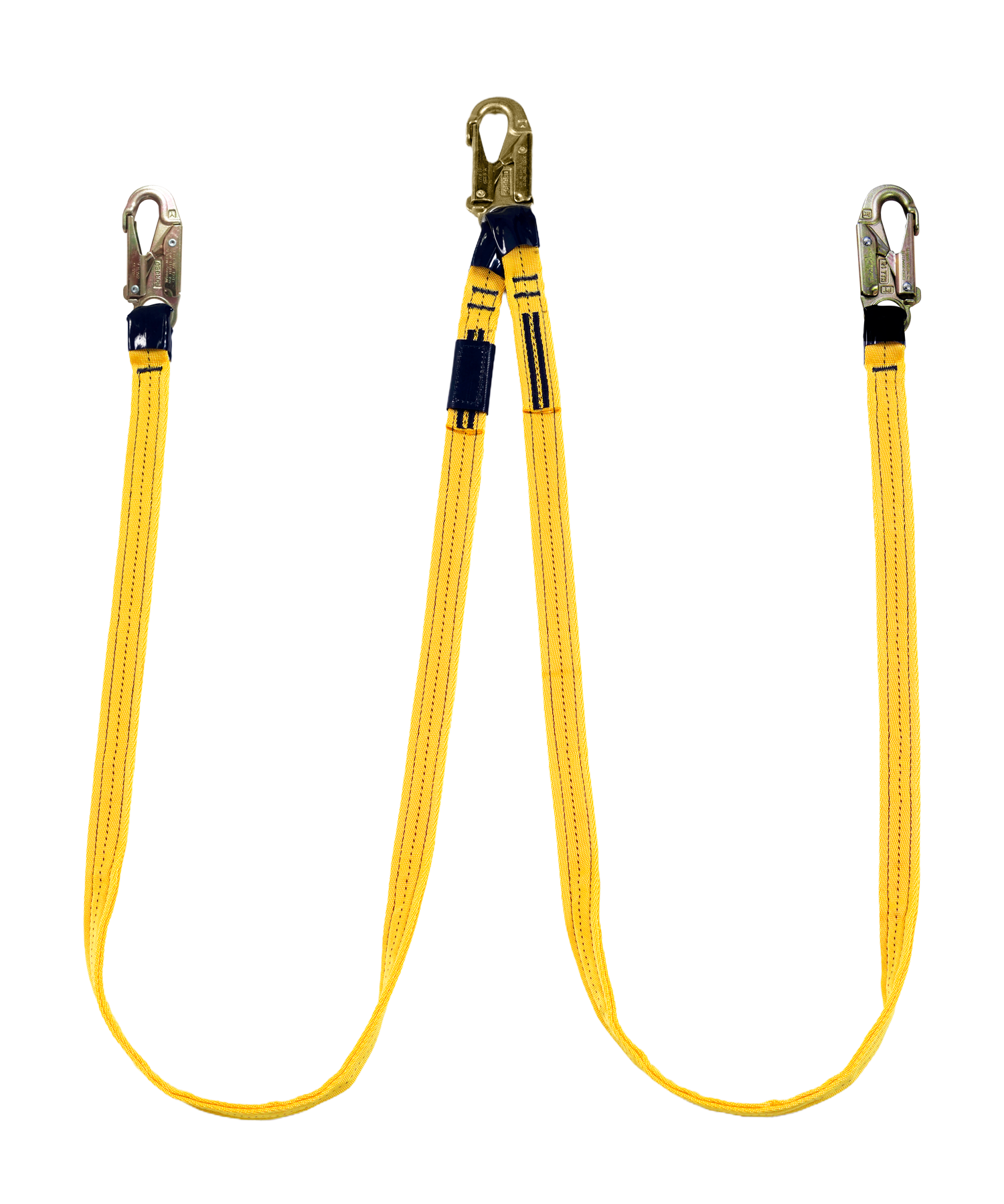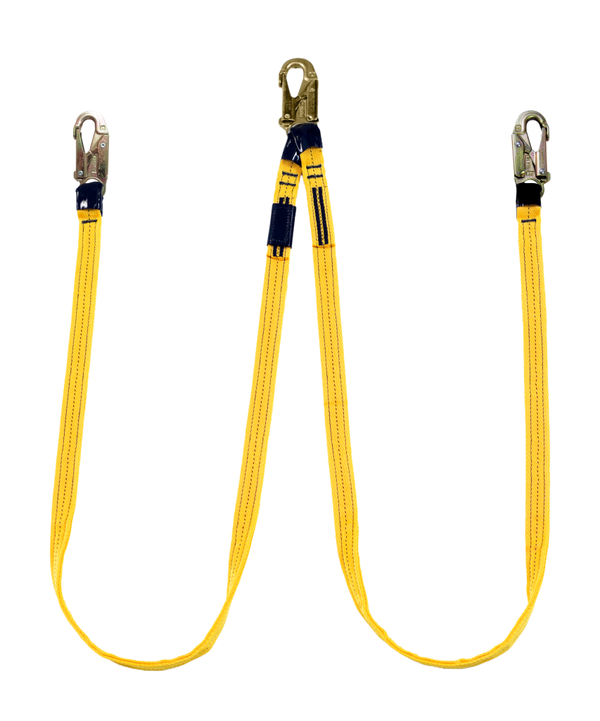 Inicio / Productos / Líneas de vida/conexión sin amortiguador/Líneas de conexión/Cinta de poliéster de alta tenacidad/Línea de conexión doble, de 1.80 m, de cinta poliéster y tres ganchos de 3/4″