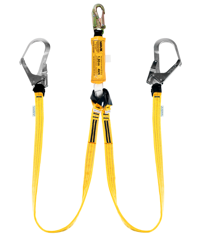 Inicio / Productos / Líneas de vida/conexión con amortiguador de caída/Amortiguador de caída para 1,80 m - Factor 1/Cinta de poliéster de alta tenacidad/Línea de vida/conexión doble, con amortiguador de caída factor 1, de cinta poliéster, un gancho de 3/4″ y dos ganchos de 2 1/4″