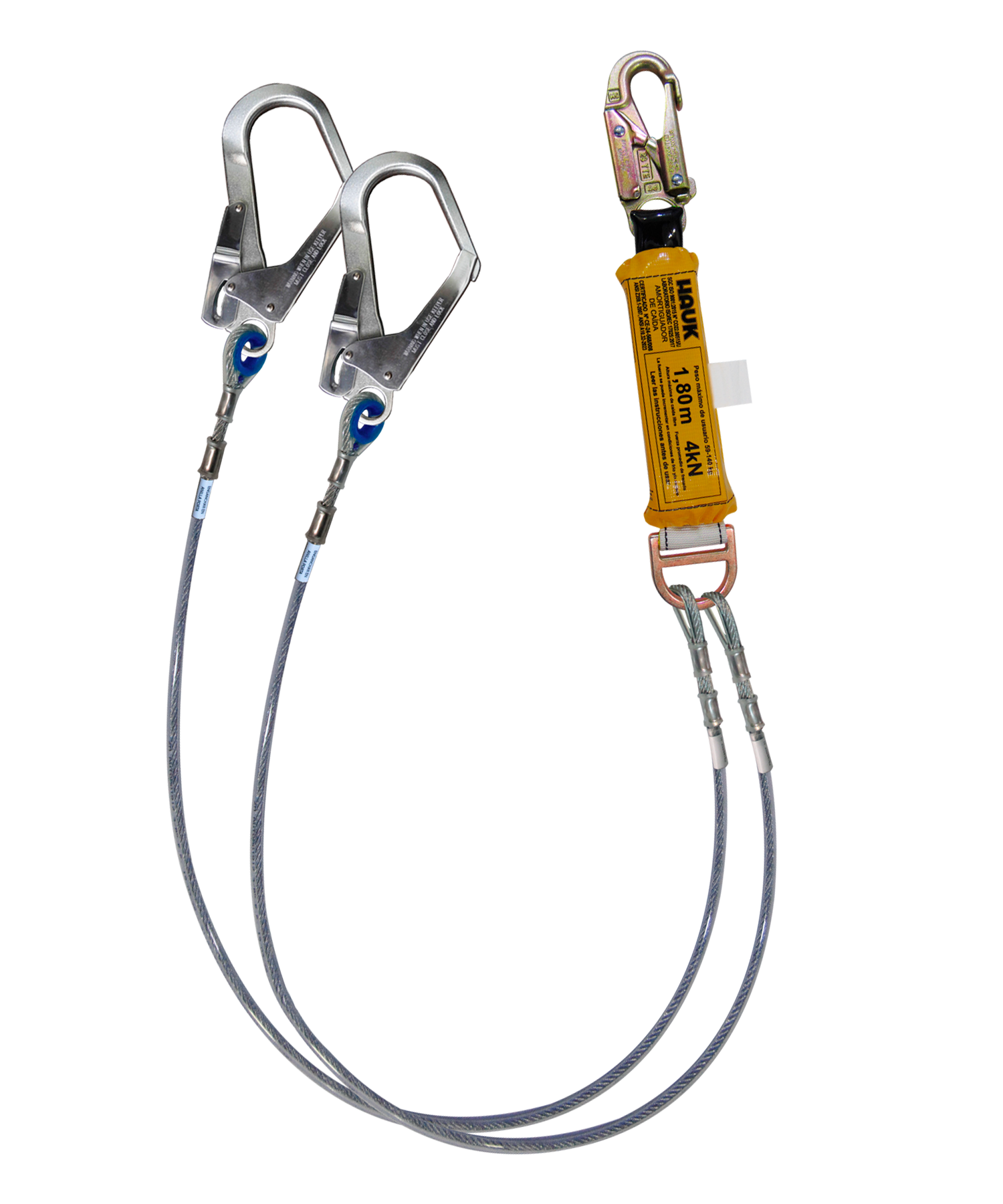 Inicio / Productos / Líneas de vida/conexión con amortiguador de caída/Amortiguador de caída para 3,60 m - Factor 2/Cable de acero 1/4"/Línea de vida/conexión, con amortiguador de caída factor 2-altura máxima de caída 3,60 m, cable de acero de 1/4″ y dos ganchos de 3/4″