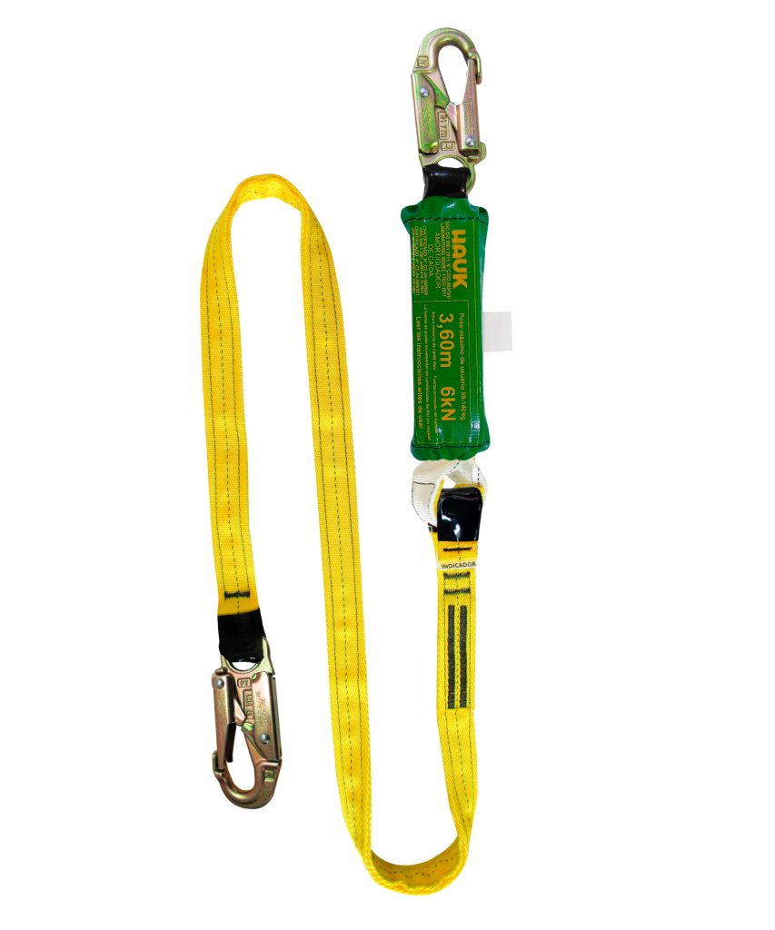 Inicio / Productos / Líneas de vida/conexión con amortiguador de caída/Amortiguador de caída para 3,60 m - Factor 2/Cinta de poliéster de alta tenacidad/Línea de vida/conexión, con amortiguador de caída factor 2 – altura máxima de caída 3,60 m con dos ganchos de 3/4″
