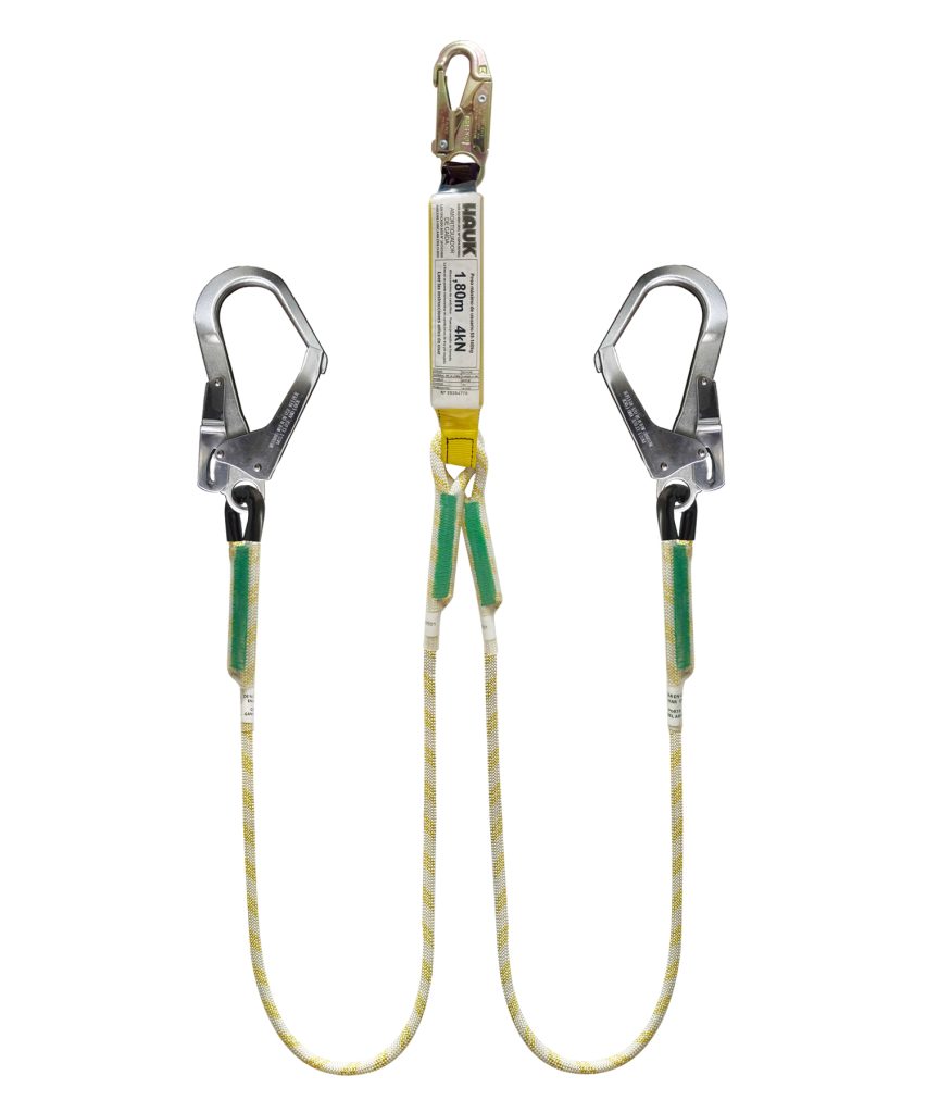 Inicio / Productos / Líneas de vida/conexión con amortiguador de caída/Amortiguador de caída para 1,80 m - Factor 1/De cuerda semiestática tipo A de 11 mm/Línea de vida/conexión doble, con amortiguador de caída factor 1, de cuerda de 11 mm, un gancho de 3/4″ y dos ganchos de 2 1/4″