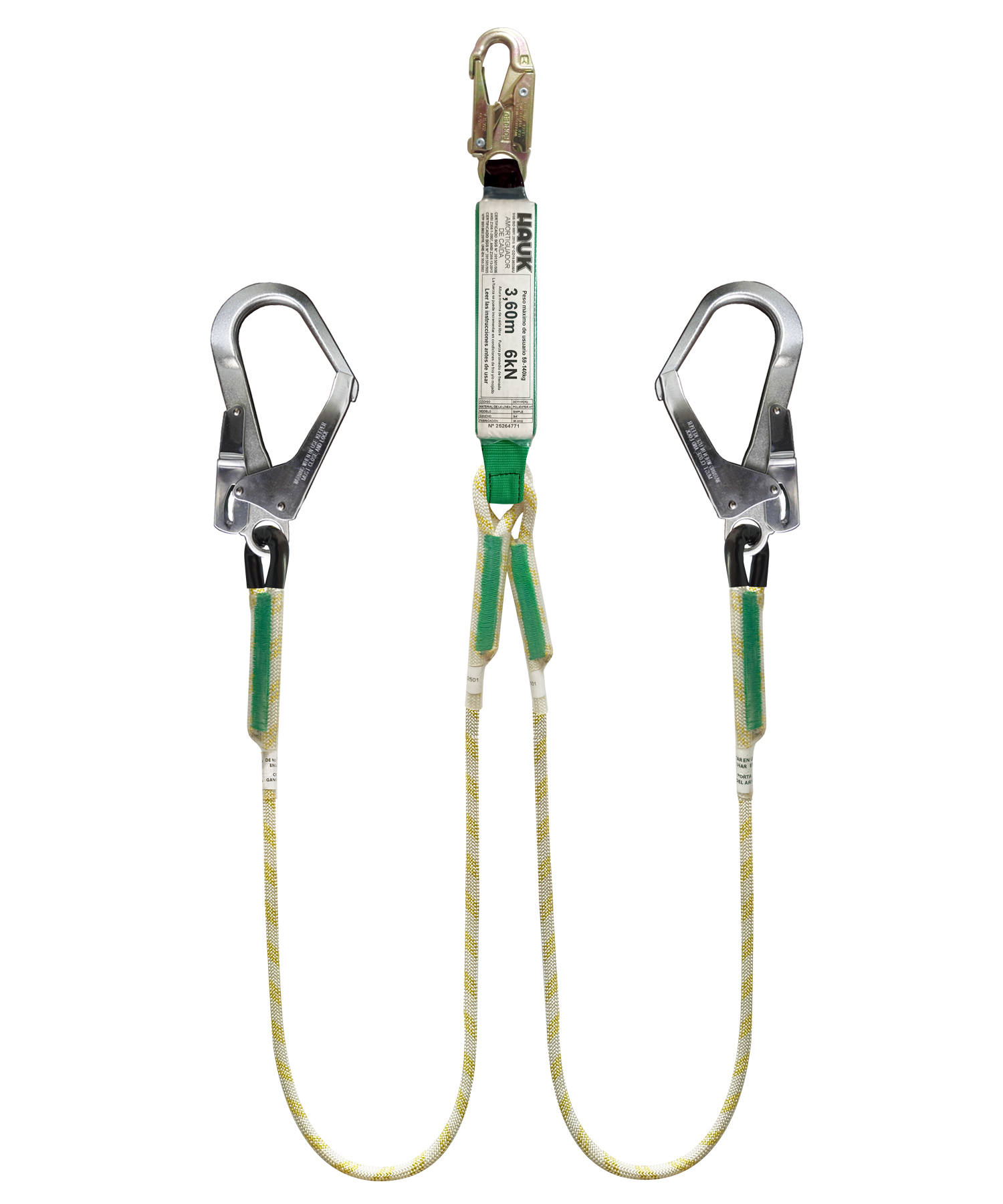 Inicio / Productos / Líneas de vida/conexión con amortiguador de caída/Amortiguador de caída para 3,60 m - Factor 2/De cuerda semiestática tipo A de 11 mm/Línea de vida/conexión doble, con amortiguador de caída factor 2, de cuerda de 11 mm, un gancho de 3/4″ y dos ganchos de 2 1/2″ – ANSI Z359